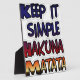 This artwork features the phrase "KEEP IT SIMPLE HAKUNA MATATA" arranged in a stacked format, creating a bold and eye-catching design. Each word is presented in a distinct colour and outlined in black, enhancing visibility and impact.