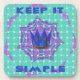 The central motif showcases a symbolic blue and gold crown, representing focus and inner royalty. This crown is set against a dynamic, geometric background: a teal/mint grid pattern overlaid with a purple and white radiating starburst. The powerful message "KEEP IT SIMPLE" boldly frames the top and bottom of the design. This combination of clean geometry and motivational symbolism is ideal for anyone seeking clarity and a mindful approach to their daily life.