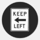 KEEP LEFT SIGN CLASSIC ROUND STICKER