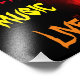 A burning acoustic guitar in full flame against a black background with the slogan "Keep Music Live" in flame colors of red, yellow and orange. A stunning effect to add to a wall, mantlepiece or other display feature. Ideal gift for guitarists, nusicians, heavy metal and live music fans.