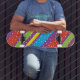 Whether you’re doing grinds on the half-pipe or kickflips in the street, this competition shaped board has supreme pop! Our decks are made of the best quality hard-rock maple and with our one-of-a-kind printing process; you get the best skateboard available in the world.