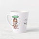 A latte mug to remind us to see the positive; featuring a happy guinea pig dancing in the rain, with a tasty nasturtium leaf for an umbrella. The default text reads "Keep smiling", change to a different caption if preferred. They say that faking a smile can actually change your mood!