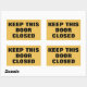 Keep This Door Closed sign to remind people that a door must remain closed for safety or fire hazard or other reason. Bold black lettering on caution yellow background.