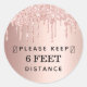 A sticker for use when reopening your beauty salon business after Covid-19, the corona virus. A rose gold gradient background and glitter drips. With the text: Please keep distance.