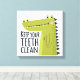 This hand drawn design features a a smiling crocodile with a health promoting phrase.