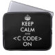 Keep calm and c code on laptop sleeve | Geek humour. Keep calm and c++ on t-shirt | Computer programmer code tee. Create your own funny Keep calm and carry on parody. For example with these internet programming languages: html php java javascript perl sql. Customise background colours and text the way you want it.