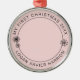 Modern keepsake baby's first Christmas personalise ornament in curve letters and line art of snowflakes overlaying a dusty blush pink with your favourite photo.