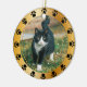 Get this beautiful keepsake round photo ornament for your pet! Simply add your photo, edit the script, and enjoy your custom ornament! Features a cute gold frame with pet paws around it, and on the back you can personalise the script with a name, message, and year to remember. This ornament is made of glossy ceramic and comes with a string to tie on and hang anywhere. Optional velvet pouch available for purchase with your gift order. See store for similar and different styles.