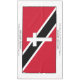 Patriotic keepsake TRINIDAD FLAG Tablecloth with Cross and Scripture Verse. Design shows the flag of TRINIDAD & TOBAGO with a white cross with drop shadow at the centre. A thick white border surrounds the flag, and includes placeholder name and Scripture verse on the long sides. THIS TEXT IS CUSTOMIZABLE, so you can replace with the name of your church or organisation, or other text of choice. If you attach weights at the corners (not included), this tablecloth could possibly also be used as a PALL CLOTH at a funeral, and kept as a keepsake afterwards. Other flags and versions available.