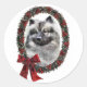 Beautiful watercolor art of a Keeshond encircled by a holiday wreath. great Christmas gifts for Keeshond lovers. Lots of merchandise choices. In both apparel and holiday gift products.