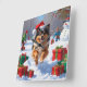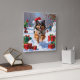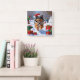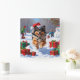 Keeshond Dog Running in Snow with Christmas Hat Square Wall Clock