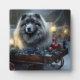 Keeshond Snowy Sleigh Christmas Decor Plaque