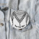 Palestinian / Arab Keffiyeh black and white Scarf designed as if wrapped around the neck, element isolated on white. The keffiyeh, also known as a hatta, is a traditional Arab headdress. Historically, it was worn by nomadic communities — or Bedouins — in historic Palestine. It's typically made of cotton and adorned with distinctive woven patterns. Desing Created by BluedarkArt TheChameleonArt.