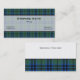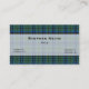 Stylish plaid business card done in the traditional blue, green, and black Keith tartan pattern. The front of the card has a black edged semi transparent white band, across the middle of the card, with custom black text. The back of the card is done in white, with a strip of plaid at the bottom, and black text on the white portion. Personalise all the text to suit your needs. Handsome and professional looking business card.