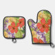 Keleah Tropical Hawaiian Hibiscus and Orchids Oven Mitt & Pot Holder Set