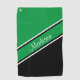 Kelly Green Black Diagonal Stripe Script Name Golf Towel