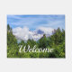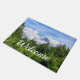 Welcome doormat featuring a beautiful summer season photo of some snow covered mountains at Kenai Fjords National Park along the Exit Glacier hiking trail. This is located near Seward Alaska, United States.
