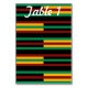 Table card with green, dark red, and yellow gold stripes on black Kente Cloth. Customise the table number using the easy template. Font style, font size, and font colour are customisable. Classic and chic, the perfect wedding reception table card.