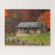 Kentucky Country Cabin Fall Season Watercolor Art Jigsaw Puzzle