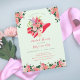 This feminine and eye-catching invitation is great to celebrate a bridal shower with a Kentucky Derby inspired theme. The design features a modern illustration of a woman's head with a fascinator, or hat decorated with flowers, bows, and feathers. This look is typical of the theme and sets the tone for a fun event. Roses decorate the borders and corners for an added theme touch.