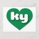 This postcard features a vibrant green heart containing the bold, white, rounded lower case letters ky, a playful abbreviation for Kentucky, the bluegrass state. The reverse side of the postcard is blank, awaiting your handwritten sentiments or customised text.