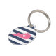 Let your furry friend show some home state pride with this cute Kentucky ID tag. Design features a white silhouette map of the state of Kentucky in pink with a white heart inside, on a preppy navy blue and white stripe background. Add your pet's name and contact information to the back in white lettering on a pink background.