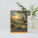The illustration highlights Kentucky’s most beloved features, including the picturesque horse farms of Lexington, the serene beauty of the Red River Gorge, and the vibrant energy of Louisville’s cityscape. Each detail, from the early morning mist hovering over the pastures to the golden glow of the sun setting over the Ohio River, is captured with extraordinary realism. Whether you’re drawn to the grandeur of Churchill Downs or the natural wonders of Mammoth Cave, this postcard offers a breathtaking glimpse into Kentucky’s diverse beauty.