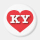 This magnet features a vibrant red heart containing the bold, white, upper case letters KY, the official abbreviation for Kentucky, the bluegrass state.