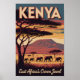 Kenya Elephants Illustration Travel Art Vintage Poster
