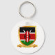 The flag of Kenya infused into a shield shape that is faux gold and a faux gold ribbon with text embedded.