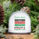 Personalised snow globe features the Kenyan Flag with the word KENYA below in the colours of the flag. Design is tiled, for a better aesthetic. Use the space provided in the white fractal of squiggly squares to add your name, in green letters, for a personalised touch. Create a gift by adding someone else's name instead. Fun stocking stuffer or holiday gift.