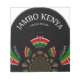The artwork features a central, circular design that boldly incorporates the colours and the iconic Maasai shield of the Kenyan flag. Curved banners above and below the circle display the beloved Swahili phrases: "JAMBO KENYA" (Hello Kenya) and "HAKUNA MATATA" (No Worries). This balanced and visually rich composition merges national symbols with welcoming phrases, creating a distinctive badge-like or emblem feel that expresses both Kenyan pride and a warm, carefree spirit.