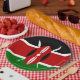 This design features the national flag of Kenya (officially known as the Republic of Kenya; in Swahili, Jamhuri ya Kenya), which is a country in Eastern Africa. Kenya is bordered by South Sudan to the northwest, Ethiopia to the north, Somalia to the east, Uganda to the west, Tanzania to the south and the Indian Ocean to the southeast. The capital and largest city of Kenya is Nairobi, while the country's oldesty city and first capital is the coastal city of Mombasa. Other major cities in Kenya include Nakuru, Ruiru, Eldoret, Kisumu, Kikuyu, Thika, Naivasha, Karuri, Ongata Rongai, Garissa, Kitale, Juja, Mlolongo, Malindi and Mandera.