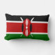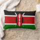 Lumbar throw pillow with flag of the Republic of Kenya with black, white, red and green stripes with emblem consisting of two white spears and traditional Maasai shield