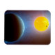 This artist's conception depicts the Kepler-10 star system, located about 560 light-years away near the Cygnus and Lyra constellations. Kepler has discovered two planets around this star. Kepler-10b is, to date, the smallest known rocky exoplanet, or planet outside our solar system (dark spot against yellow sun). Kepler-10c is the larger foreground object.