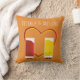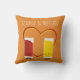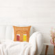 Throw Pillow with two, smiling, condiment packets. The ketchup and mustard characters are smiling at each other in front of a red and yellow heart. The words can be customised.
