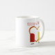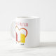 A mug with two, smiling, condiment packets. The ketchup and mustard characters are smiling at each other in front of a red and yellow heart. The words can be customised.