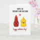 This greeting card shows two cute condiment bottles centered on a plain white background. A shiny red ketchup bottle with a red cap stands next to a golden-yellow mustard bottle with a yellow cap, and they look like best buddies. Each one has small black dot eyes, big crescent smiles, and soft pink blush on their cheeks, like they’re a little shy and happy. A single pink heart floats above and between them, tying the pair together in a sweet way ❤️. Across the top, the text “YOU’RE THE KETCHUP TO MY MUSTARD” appears in black, all-caps block letters that are easy to read. Near the bottom, “happy valentine’s day!” is written in dark red cursive script with a friendly, handwritten feel 💌. The bright red and yellow colors stand out strongly against the white space, keeping the focus on the message of affection 🍫. Hope it helps you share kind Valentine’s Day sentiments with someone you care about.