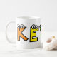 Funny cartoon typeface with cartoon eyes spelling out the boys name KEVIN. Find more names in this series. Easily customise and choose your own background colour. Image available on various gifts and products.