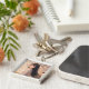 The overall setting feels warm, organized, and stylish — like a lifestyle or product display showcasing a personalized photo keychain.