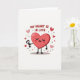 This Valentine's Day card shows a shiny red heart character standing in the middle, smiling with closed eyes and light pink cheeks. It has thin black arms and legs, and one hand holds up a small gold key with a tiny heart shape at the top. Around the heart, several small hearts in pink and dark red float nearby, along with a few little sparkle marks. The background is plain white, which keeps the focus on the heart and the key. Near the top, the card says “MY HEART IS IN LOVE” in thick, hand-drawn black lettering. The overall scene feels sweet and romantic, like a simple way to say you’ve fallen for someone 💘❤️.