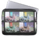 The colourful, original design on this 13” Laptop Sleeve was made from an original photograph by ZoeSPEAK of a bicycle parked outside a shop in Key West, Florida. Clothing from the shop hangs on the open door behind the bicycle. The photo is done in four colour schemes, red bike, blue bike, green bike and yellow bike, with corresponding clothing colours. The backgrounds are in muted shades of mauve and olive greys, and the overall background is a marbled black.
