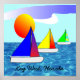 Key West, Florida, sailboat art poster. Bright and bold colours, hand sketched by artist. Great gift item.