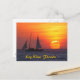 This beautiful postcard photographs a loan sailboat creeping by as the late evening sun melts into the Gulf of Mexico off the coast of Key West, Florida illuminating the evening sky with brilliant colours of golden yellow, orange and red. Matching postage stamps and "thank you" cards also available.