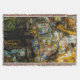 A quality printed throw has its advantages. This is a much finer weave throw than its loopier cousins, and though lighter, it is worth the investment for custom room accessorizing. The back is much prettier than the typical brown, and the fringe on the long sides very vivid, the selvage nicely done. Before photographing, I washed the throw in cold water, delicate, with a thicker woven throw the same size. On tumble dry low, this throw was dry in half the time as the other. This is a very practical quality if you use throws for furniture covers or to wrap up in frequently. The sleekness of the fabric makes it a great layer for accenting or protecting without the feeling of sitting on too much stuff. Perfect for napping or when you feel a light chill coming on. The color printing is beautiful and on this fabric, matched the design and color of my Photoshop image. This is an advantage for blending room fabrics and colors. The fringe on the short sides prints the colors from the design image and therefore varies from the side fringe. I streaked a white fractal line through the plaid pattern to give the illusion of weaving. This printed as crisp as an illusory thread, and put some white in the short side fringe, showing another advantage of print vs loomed- for artistic purposes, line lines, detail, and color integrity can be planned and preserved. My loomed throws have color limitations and more of a needlepoint texture. Print throws reproduce an exact image. The throw felt a little stiff straight out of the package, but this went away in the first delicate wash. Of course I searched the wash water for ink or bleeding and there was none.