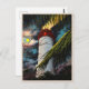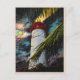 Key West Florida lighthouse at night vintage postcard reproduction with dramatic colours, palm trees, moon.