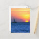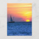 This beautiful photographs postcard features a loan sailboat creeping by as the late evening sun melts into the Gulf of Mexico off the coast of Key West, Florida illuminating the evening sky with brilliant colours of golden yellow, orange and red.