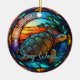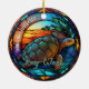 Cute faux stained glass tropical sea turtle scene, personalizable trip souvenir. Great for Christmas and family vacation keepsake, or honeymoon keepsake.