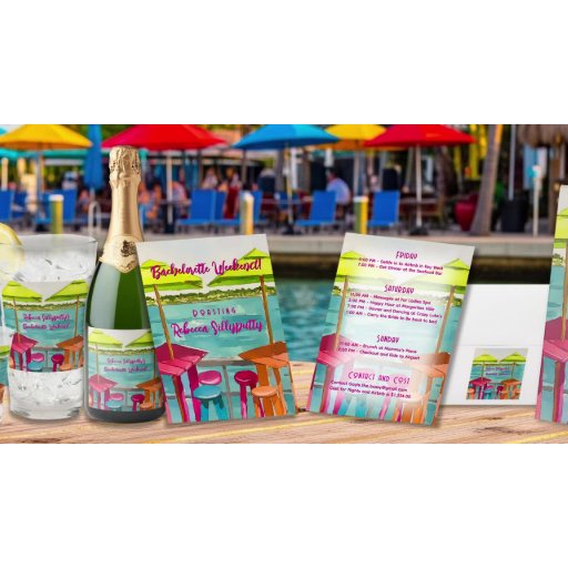 Get the bride squad looking fabulous with these fun bachelorette party t-shirts! Featuring a vibrant design of beach bar tables with bright green umbrellas and cheerful orange and pink seating, these shirts perfectly capture the celebratory and tropical vibe of the weekend. Whether you're hitting the beach or enjoying a night out, these comfortable and stylish tees will unite your crew and let everyone know it's time to celebrate the bride-to-be in sunny style!
