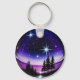 This enchanting digital artwork encapsulates the vast starry sky within a perfect circular world. The piece is dominated by deep blue and purple gradients, creating a tranquil and mysterious night. Several radiant starbursts glitter in the firmament as if lit by magic. Below, silhouetted pine trees and a purple horizon evoke the dreamy atmosphere of a cold winter or the far North. This design is imbued with a sense of fantasy, romance, and festivity, making it ideal for conveying well wishes, enhancing decor, or serving as a unique gift design. Its circular composition and distinct landscape bring a unique and captivating visual effect to any product.